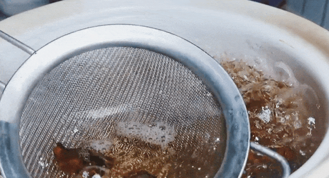 2克分心木放小碗,加溫水輕洗10秒去浮塵,別用力搓。洗好用濾網濾干備用。