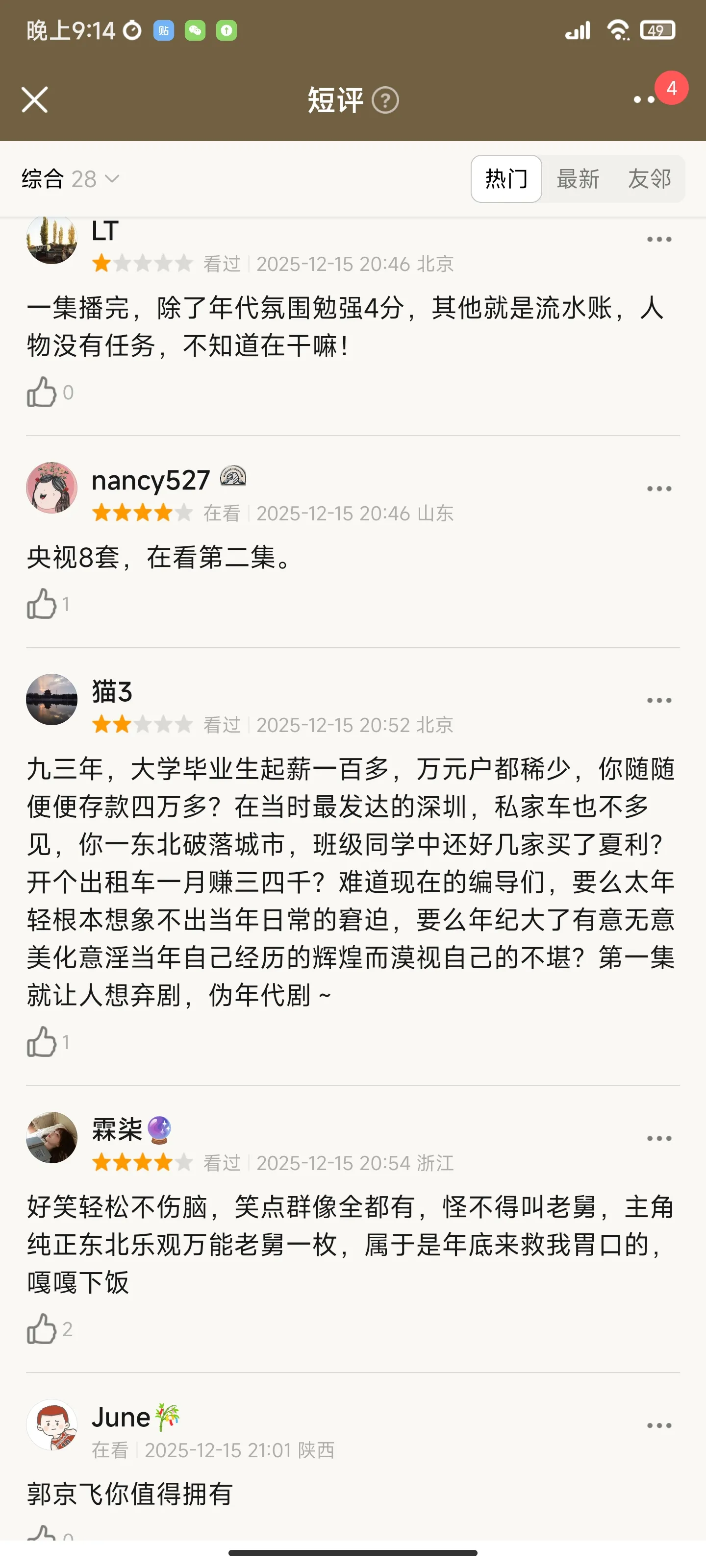 但也有少數差評,觀眾評價一針見血,就是劇中呈現的93年那會兒的家庭條件都太好了,那時萬元戶都很少,崔國明家存款就有4萬多。而且女兒學校還有好幾個能買得起夏利車,開個出租車一個月就賺三四千,顯得太假了。