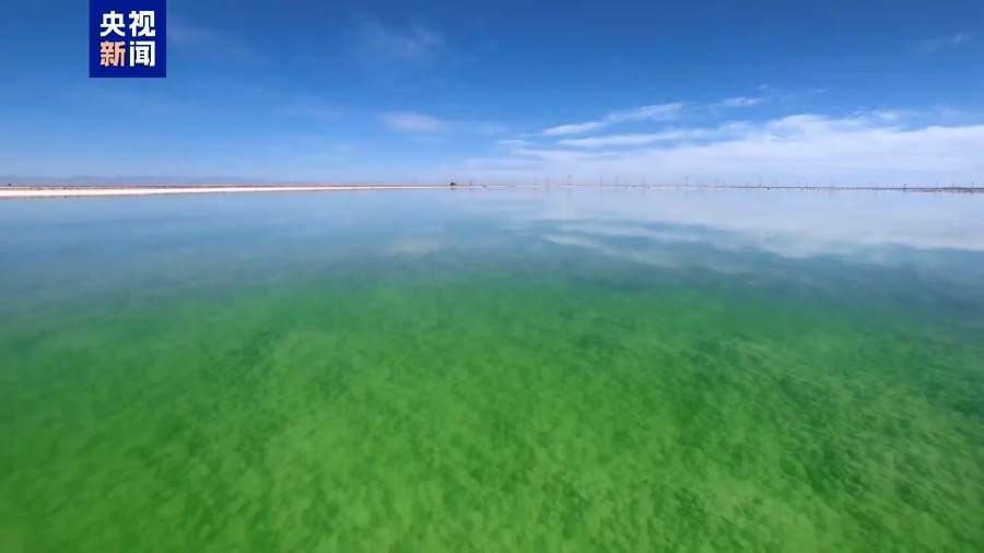 察爾汗鹽湖澄澈如鏡。人民網(wǎng)馬可欣攝