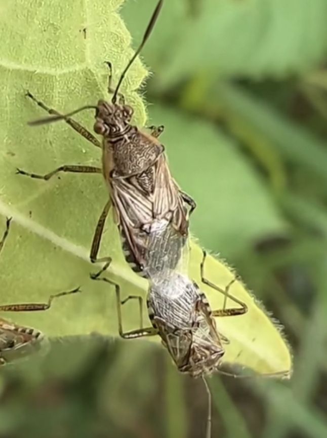 栗緣蝽,春天從暖和的雜草叢生越冬的地方,悄悄的爬出來,急急忙忙尋找好吃好喝的,快速營養豐富自己,然后呢?會在尋找食物的生活中,選擇對象結婚的,好繁殖下一代。