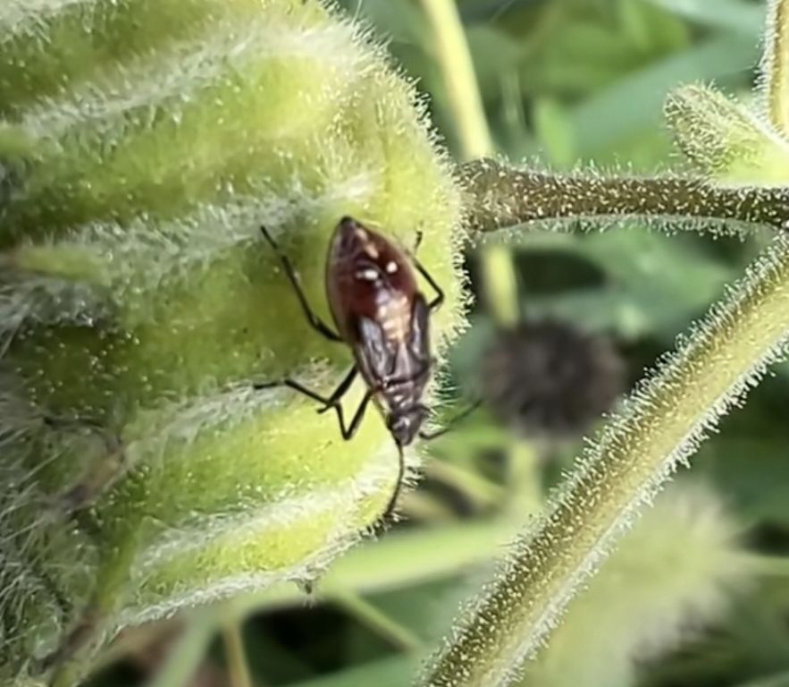 你瞧瞧,三五天就生長半大小子了,就是翅膀木有生長完全的樣子。大約七八天后就生長發育完整成為大個子栗緣蝽。