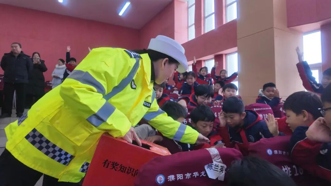 為充分調動學生的參與積極性,活動中特別設置有獎問答環節。“過馬路時應該走什么通道?”“乘坐私家車時,未成年人應該坐在哪個位置?”“騎行電動自行車需要年滿多少周歲?”等一系列貼近實際的問題接連拋出,學生們踴躍舉手、積極搶答,現場氣氛熱烈高漲。民警為答對的學生送上小禮品,讓大家在輕松愉悅的氛圍中鞏固所學的交通安全知識。