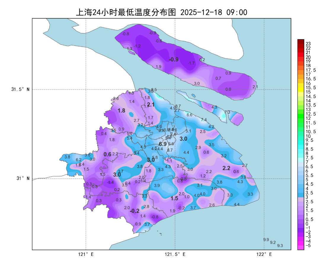 今天早晨市區(qū)徐家匯站最低氣溫6.9度,部分郊區(qū)在冰點以下,城郊差異明顯。白天晴到多云,陽光助力下,升溫很快,徐家匯站最高氣溫15.2度,午后陽光下體感暖洋洋。