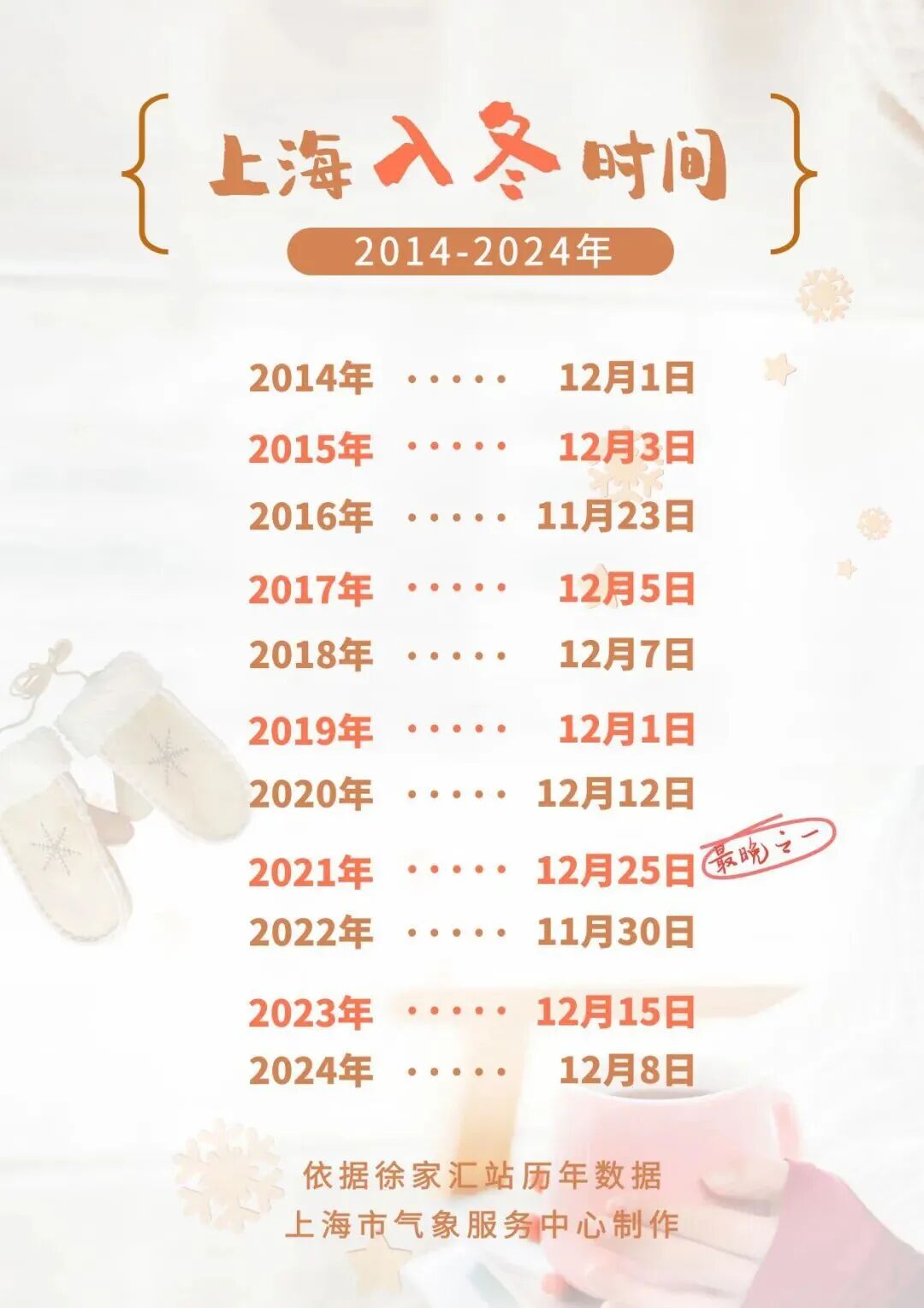 一股冷空氣蓄勢待發(fā),周末東北到江南多地將上演冷暖大反轉(zhuǎn)。申城亦是如此,周六白天還暖意融融,最高氣溫仍可達(dá)20度,夜里起受冷空氣影響,氣溫開始下降,并伴有弱降水和大風(fēng)過程。周日偏北風(fēng)增大至5級陣風(fēng)有6~7級,氣溫全天被壓制在10度以內(nèi),體感變得陰冷。周日夜里起雨止轉(zhuǎn)陰到多云。此輪冷空氣影響過后,下周初還將有一次回暖的過程,預(yù)計下周二最高氣溫仍可達(dá)18度。下周三前后新一股冷空氣將再度打亂升溫節(jié)奏,氣溫再次進入下降通道,申城開啟入冬沖刺。上海常年(1991年~2020年)平均入冬時間為12月5日,今年至今還沒跨進氣象意義上的冬天,已經(jīng)明顯偏晚。