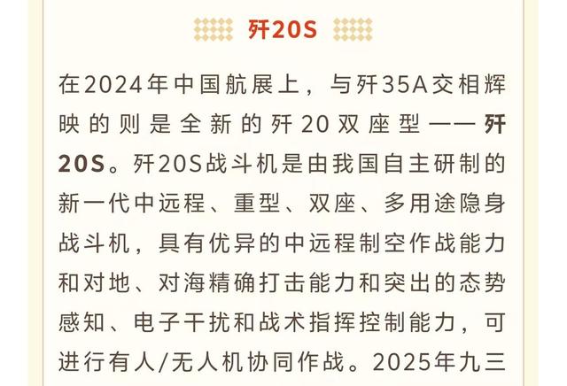 17日晚,中國航空工業集團在總結成績時,首次針對殲-20S雙座隱身戰斗機,明確了“擁有優異中遠程制空能力和對地、海精確打擊能力”的技術定位。自此,全球第一款五代機的地位無可爭議,也讓大家深深意識到,殲-20S引導無人僚機群的戰略價值。