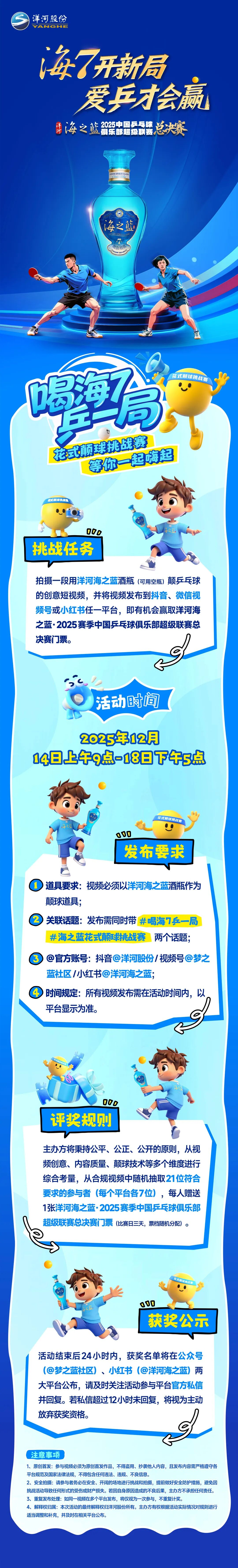 近日,由洋河海之藍發起的#花式顛球挑戰賽?席卷社交網絡,持續點燃全民乒乓熱情。