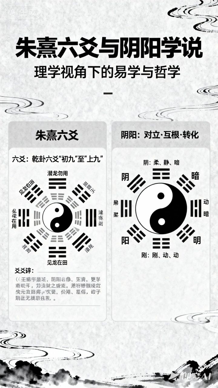 - **陰陽學說指導六爻解讀**:朱熹主張以陰陽為根本來解讀《周易》,這意味著在理解六爻所代表的意義和變化時,要依據陰陽的概念。陰陽的流行(推移,如陽變陰、陰變陽等)和對待(交錯,如天地定位、陽中有陰等)法則,可用于分析六爻之間的關系和變化趨勢。