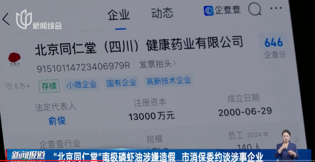 同仁堂“磷脂含量為0”的磷蝦油事件,又有了新進展。
