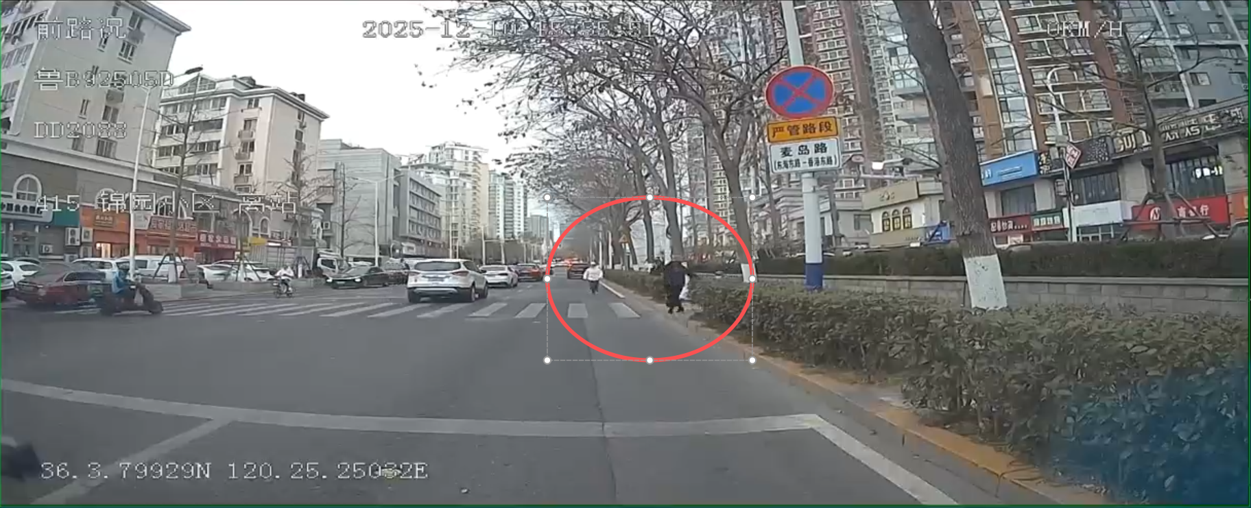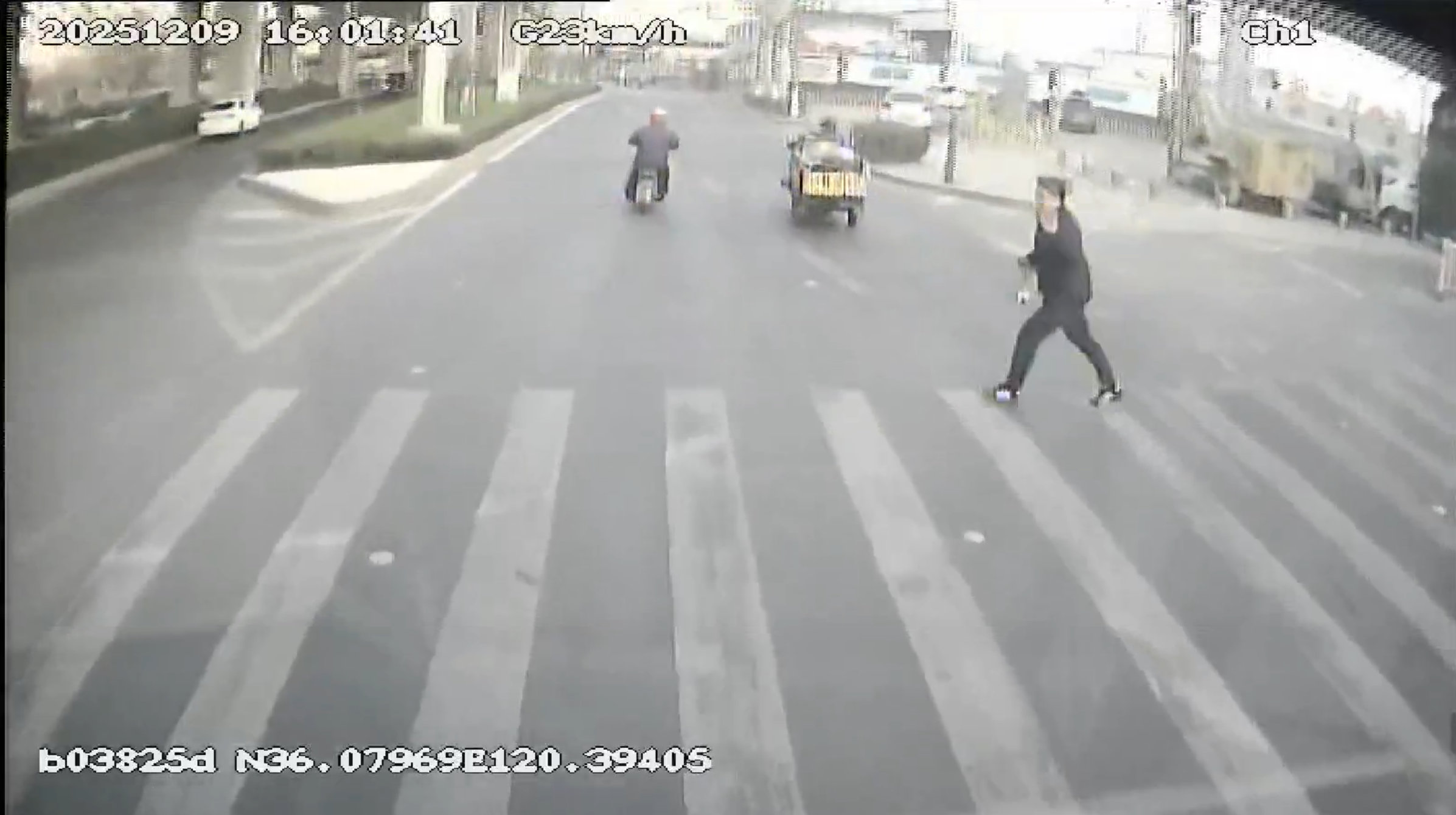令人暖心的是,這樣的善意之舉在當天12時07分左右再次上演。當這輛232路公交車行至徐州路車站,完成上下客流程正準備出站時,辛亮通過車內后視鏡發現,一名市民正從公交車后方快速橫穿馬路,朝著車門方向跑來,腳步急促。為了保障乘客安全,同時避免對方錯過班車,辛亮當即踩下剎車,保持車輛靜止狀態等候。