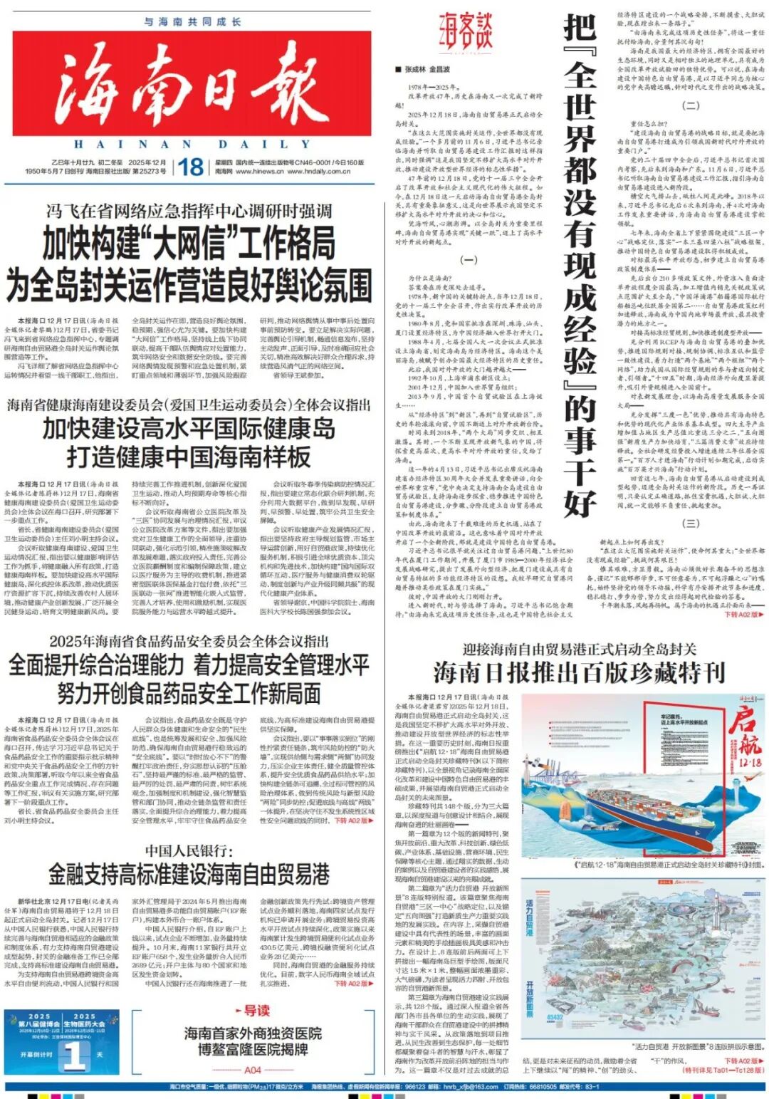 ▲《海南日?qǐng)?bào)》自貿(mào)港特刊封面