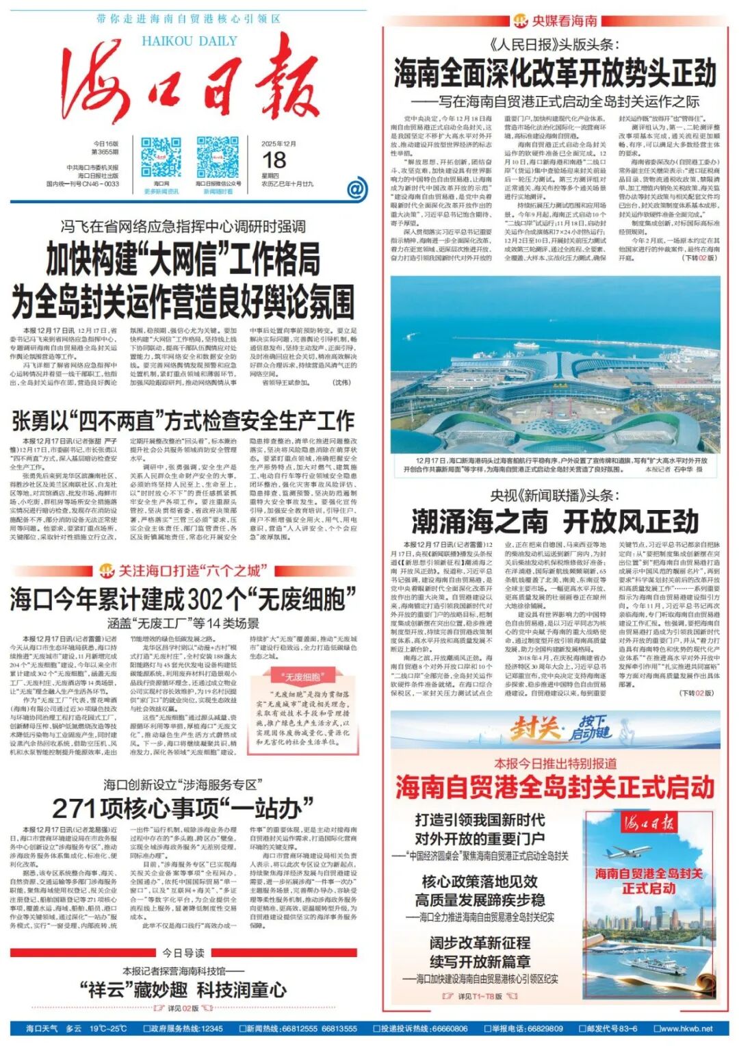 ▲《海口日?qǐng)?bào)》自貿(mào)港特刊封面