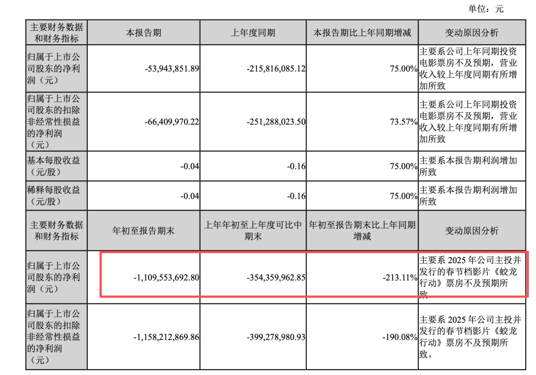 至于業績下滑原因,三季報中表示,主要系2025年公司主投并發行的春節檔影片《蛟龍行動》票房不及預期所致。