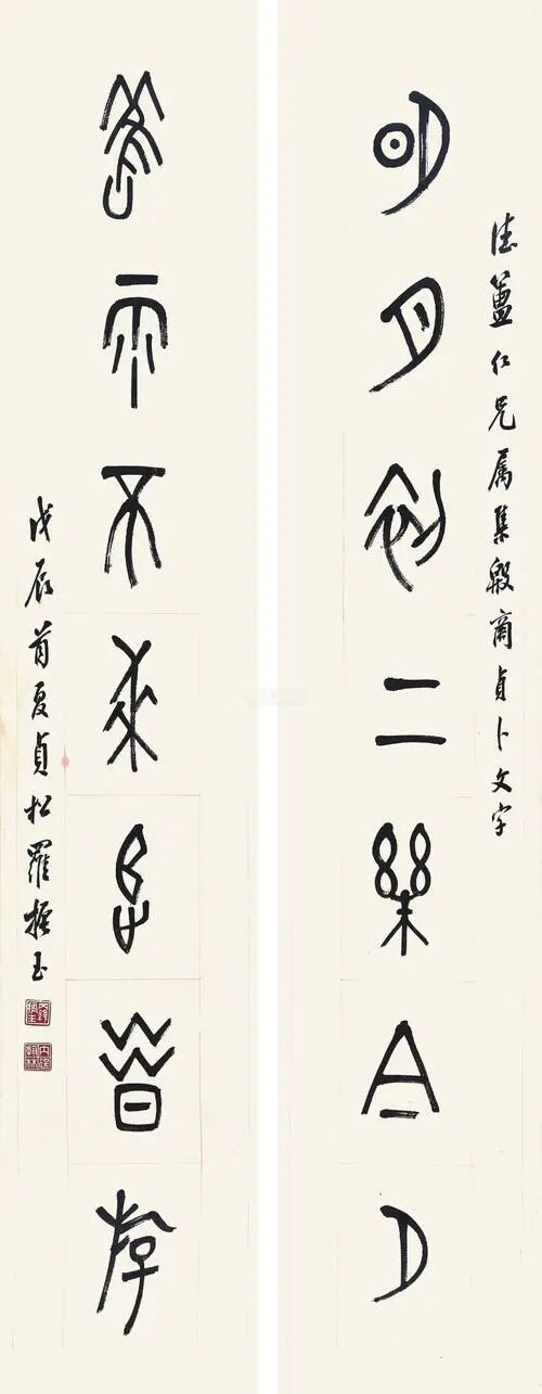 拍品名稱:羅振玉 甲骨文八言聯 立軸