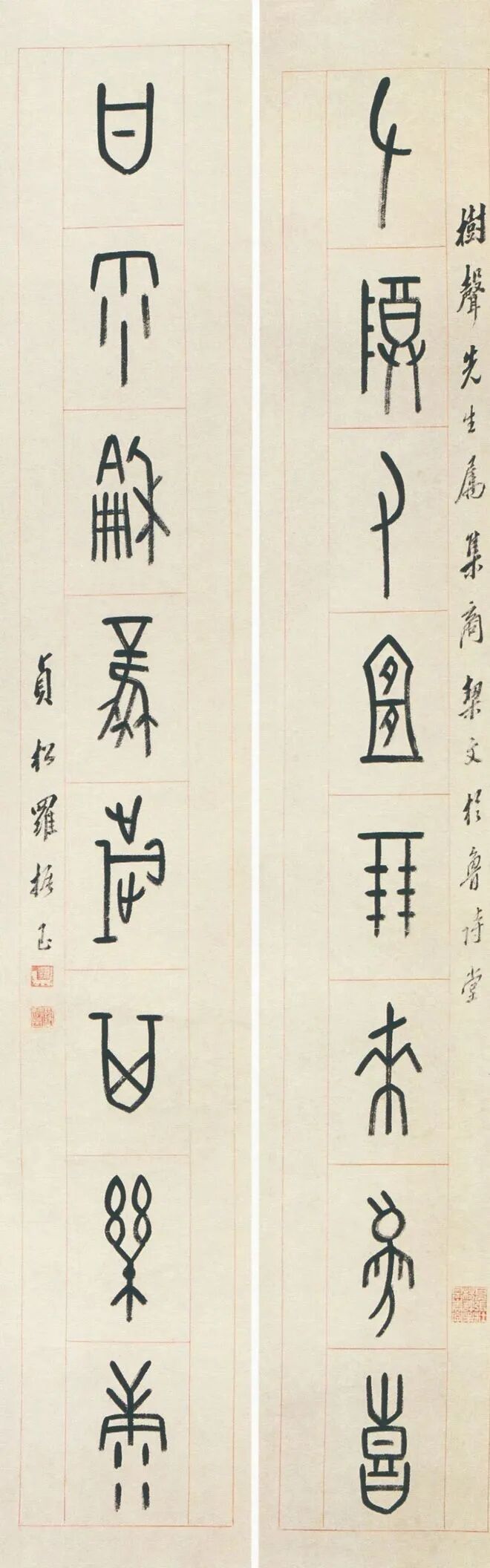 羅振玉 篆書七言聯 對聯?129.5×30cm×2