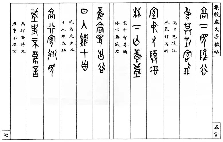 羅振玉1921年編寫的《集殷虛文字楹帖》問世,對后世甲骨文創作影響實在太大。近一百年來,甲骨文書法創作大多借鑒于此,這幾屆國展入展的甲骨文作品也是屢見不鮮。甲骨文創作,從這本小冊子入手,還可以檢校常見的甲骨文字,簡直太方便了。