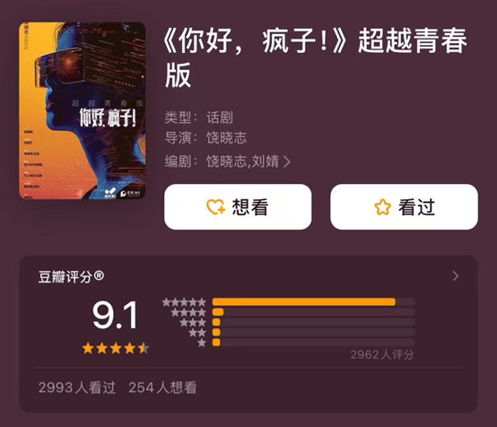 話(huà)劇確實(shí)幫楊超越挽回了一些口碑。在豆瓣上,這部話(huà)劇的評(píng)分高達(dá)9.1分,不少評(píng)論都提到了楊超越表演的進(jìn)步。