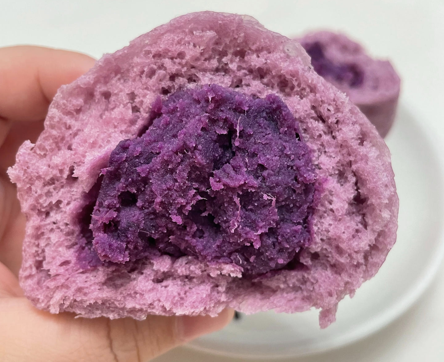 1、如果有紫薯粉的可以在和面的時候放一點,沒有的可以加一部分紫薯泥,天冷了要多加點酵母,更容易發起來。