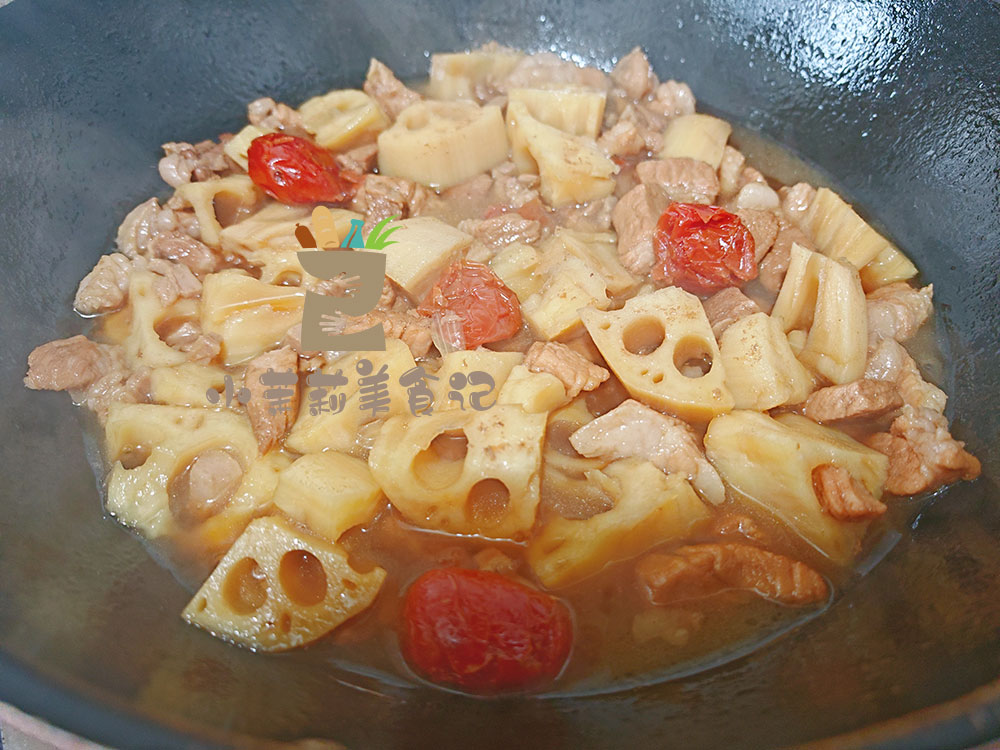 4、一個鐘頭后,藕倒里邊,補充一些鹽,把湯汁的味道調好,再煮半小時,藕變得粉糯鮮香,屆時關火即可。