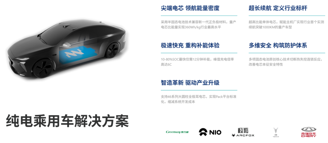 一是“360Wh/kg高能量密度動力電芯”,封裝出的半固態電池包搭載在蔚來車型上,可以實現1000km續航。