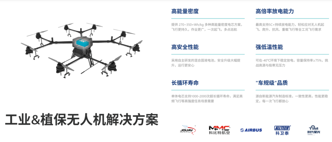 三是“320Wh/kg高能量密度低空經濟電芯”,主打輕便安全,主要面向無人機行業,目前還在推廣中。