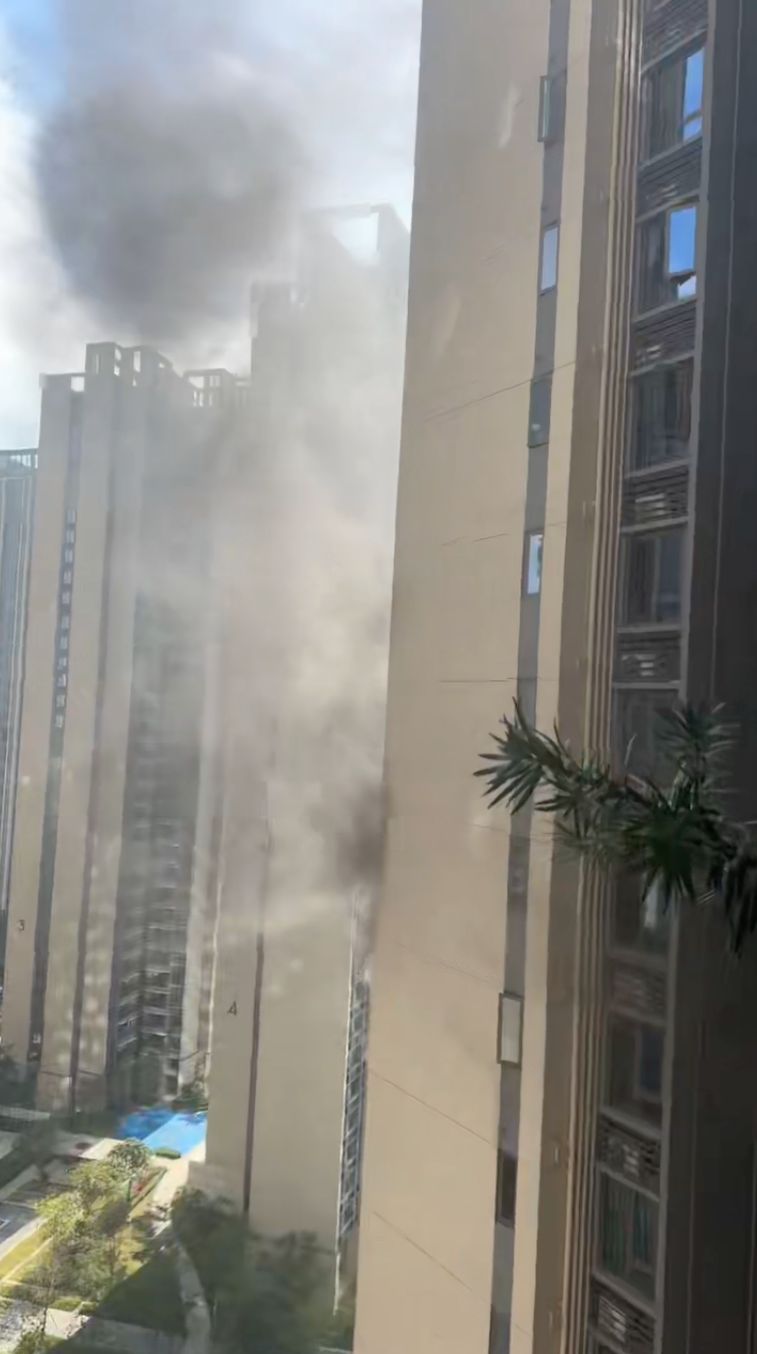 13時57分,該住戶發布的照片顯示,室內已有煙霧冒出,并配文“已經燒起來了,你們不走不關我的事呀”。很快,房屋開始起火,濃煙不斷涌出,并向高層蔓延。多位住戶于14時許拍攝的視頻、照片顯示,該樓棟15層一窗戶涌出大量黑煙,在小區外也清晰可見,群內住戶紛紛驚呼“快撤離”。