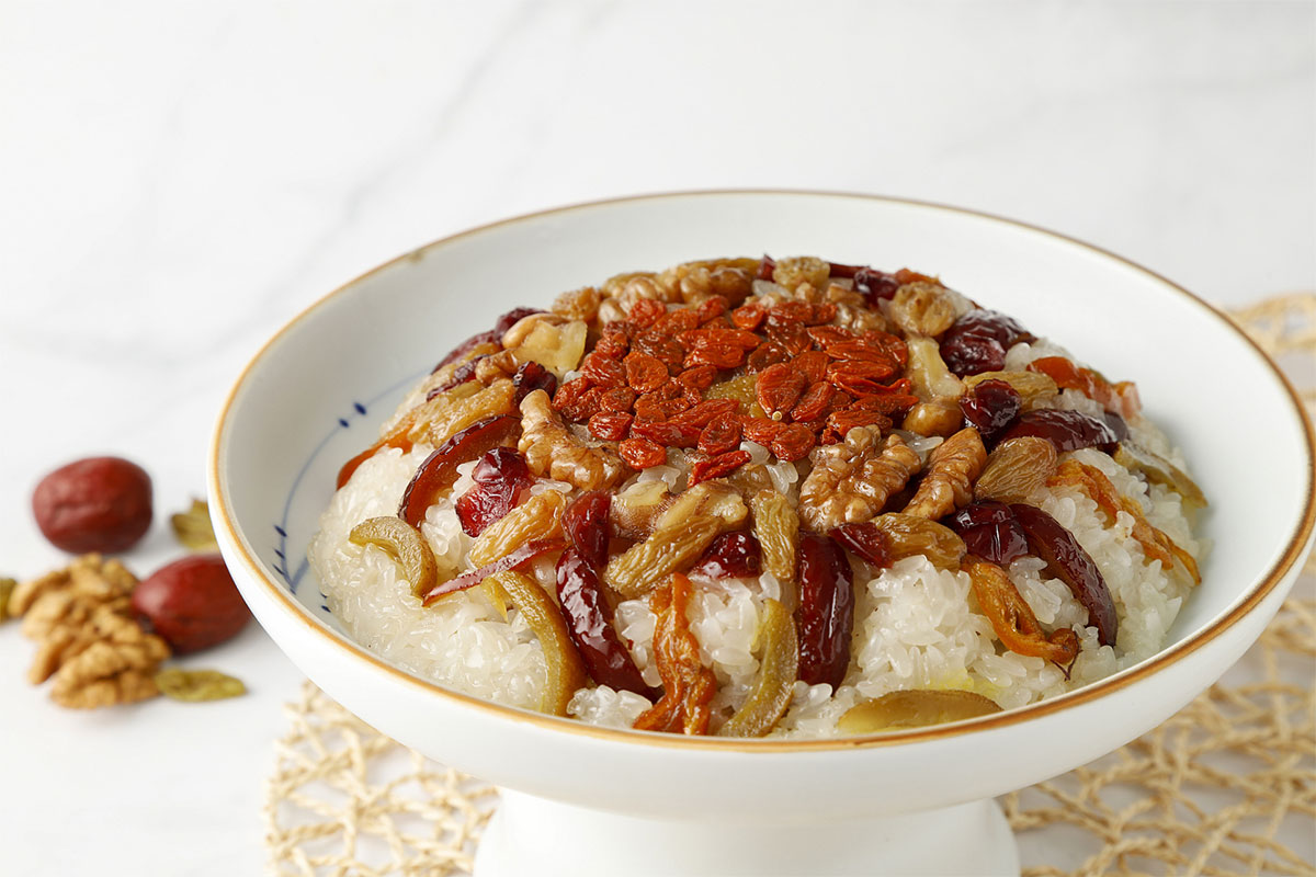 八寶飯,在寒冷的冬天,人們都喜歡吃點暖胃的,八寶飯便不錯,其用糯米以及果干搭配制作而成。吃著香甜軟糯,有助于溫補氣血,驅寒強身。而且還寓意著八方進寶之意。
