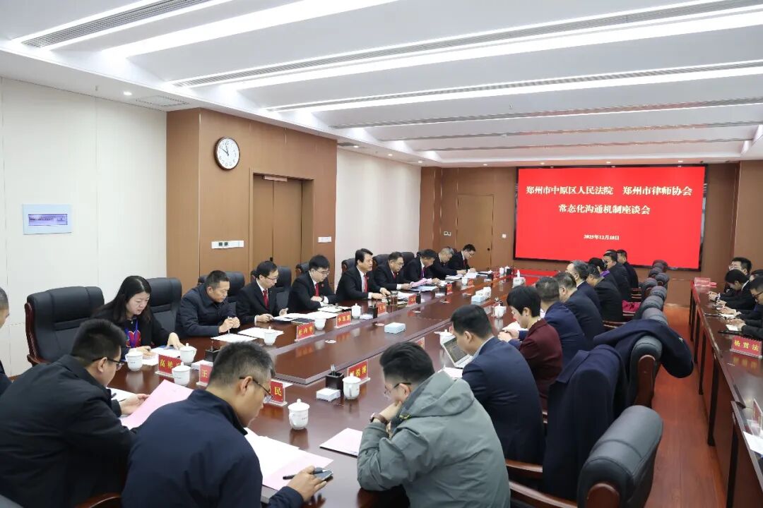 為進一步深化法院與律師行業的協同聯動,優化法治化營商環境,提升司法服務效能,12月18日上午,鄭州市中原區人民法院與鄭州市律師協會聯合舉辦常態化溝通機制座談會。鄭州市司法局律師管理處處長楊雷法,鄭州市律師協會會長趙虎林、副會長甄青鋒及相關委員會負責人,中原區法院黨組書記、院長王瑋琦及相關業務部門負責人參加座談。
