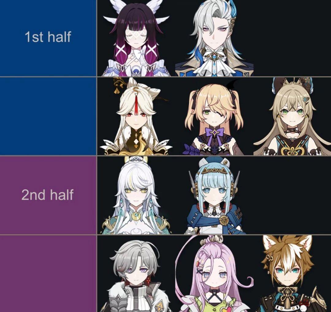 其中伊涅芙作為5.8版本登場的角色,在6.3版本也是迎來了首次復刻,對于想玩月感電體系的玩家不要錯過,就目前來看,少女+那維萊特應該在上半卡池UP,茲白+伊涅芙大概率在下半UP。