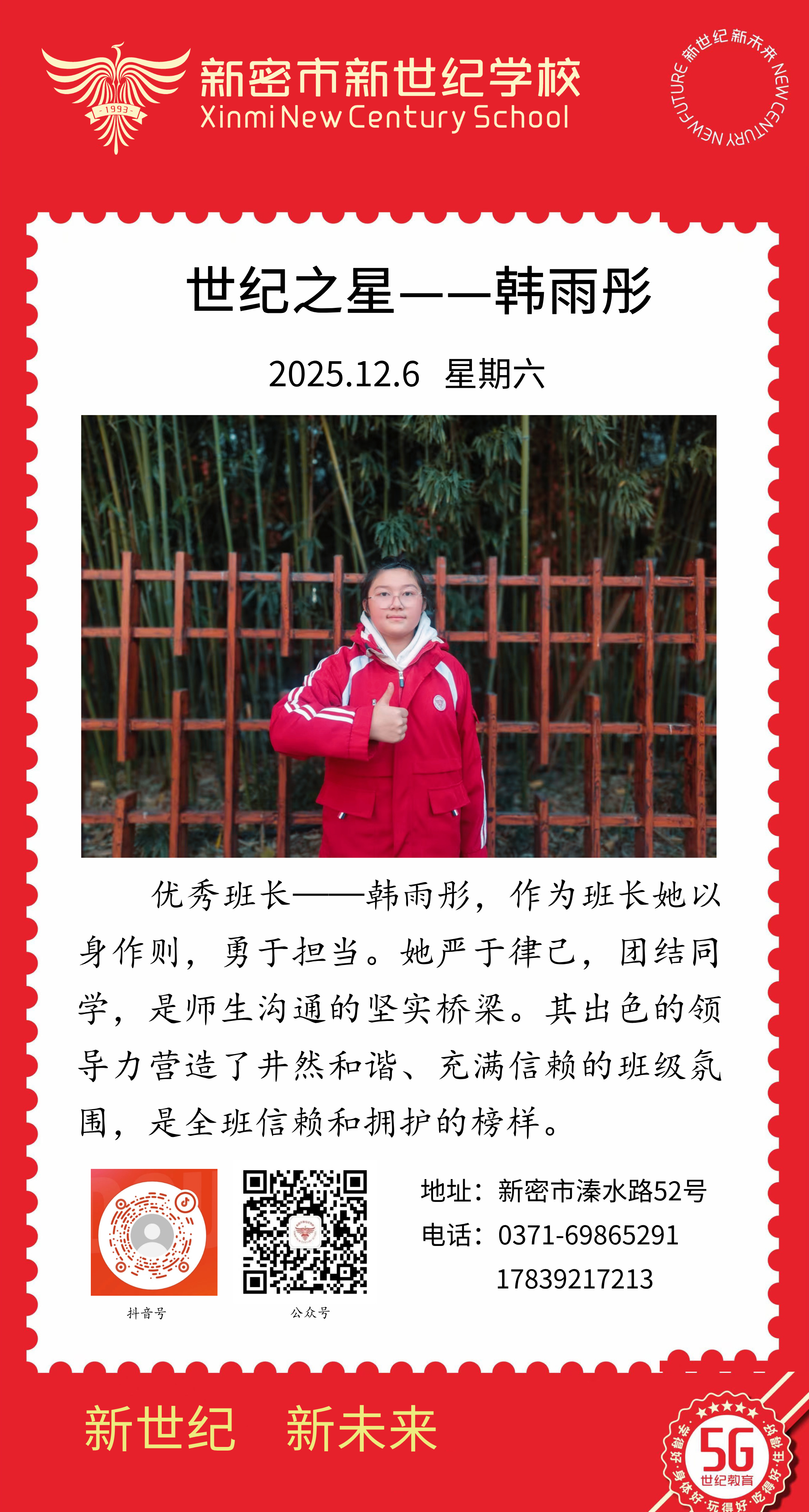 為優秀的韓雨彤同學點贊!為新世紀優質教育點贊!有老師作詩一首贊之: