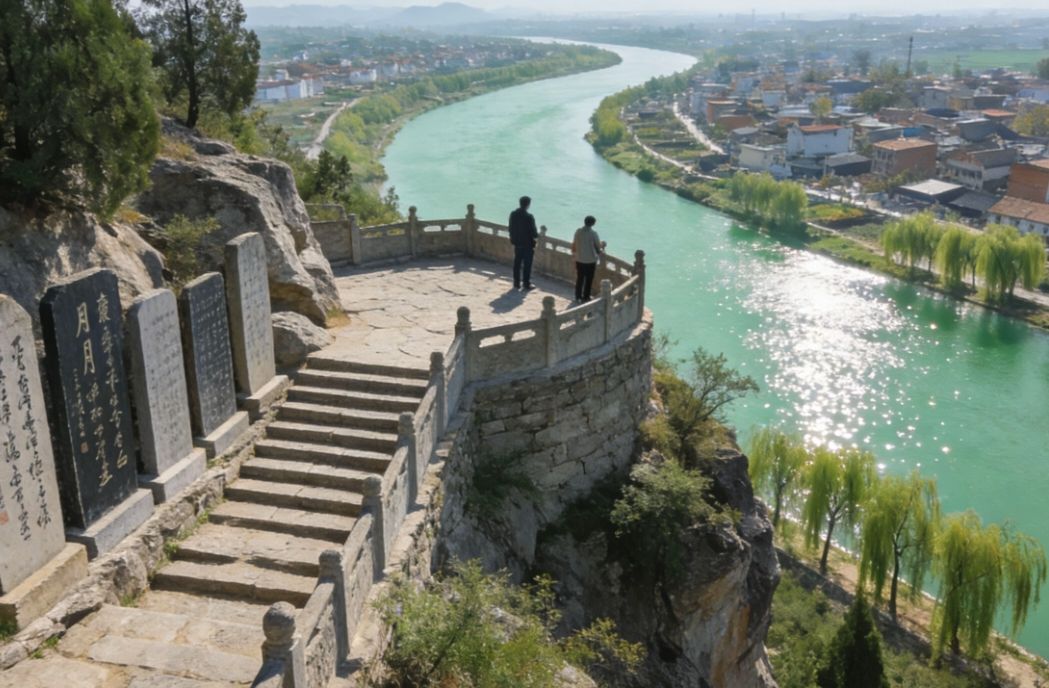 站在山頂的望月臺遠眺,汝南縣城盡收眼底,汝河如一條碧綠的絲帶纏繞其間,晨光灑在河面上,波光粼粼。