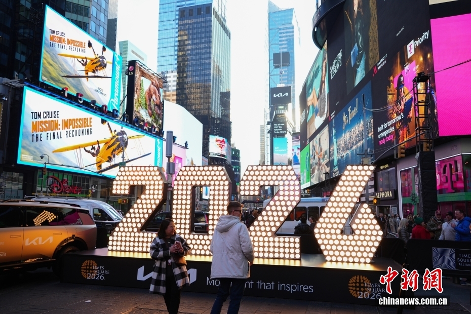 當地時間12月18日,代表新年的數字燈“2026”在紐約時報廣場亮相。這一巨型數字燈將在地面展示至12月22日,之后將被升至時報廣場1號樓的樓頂,并在新年第一秒正式亮起。