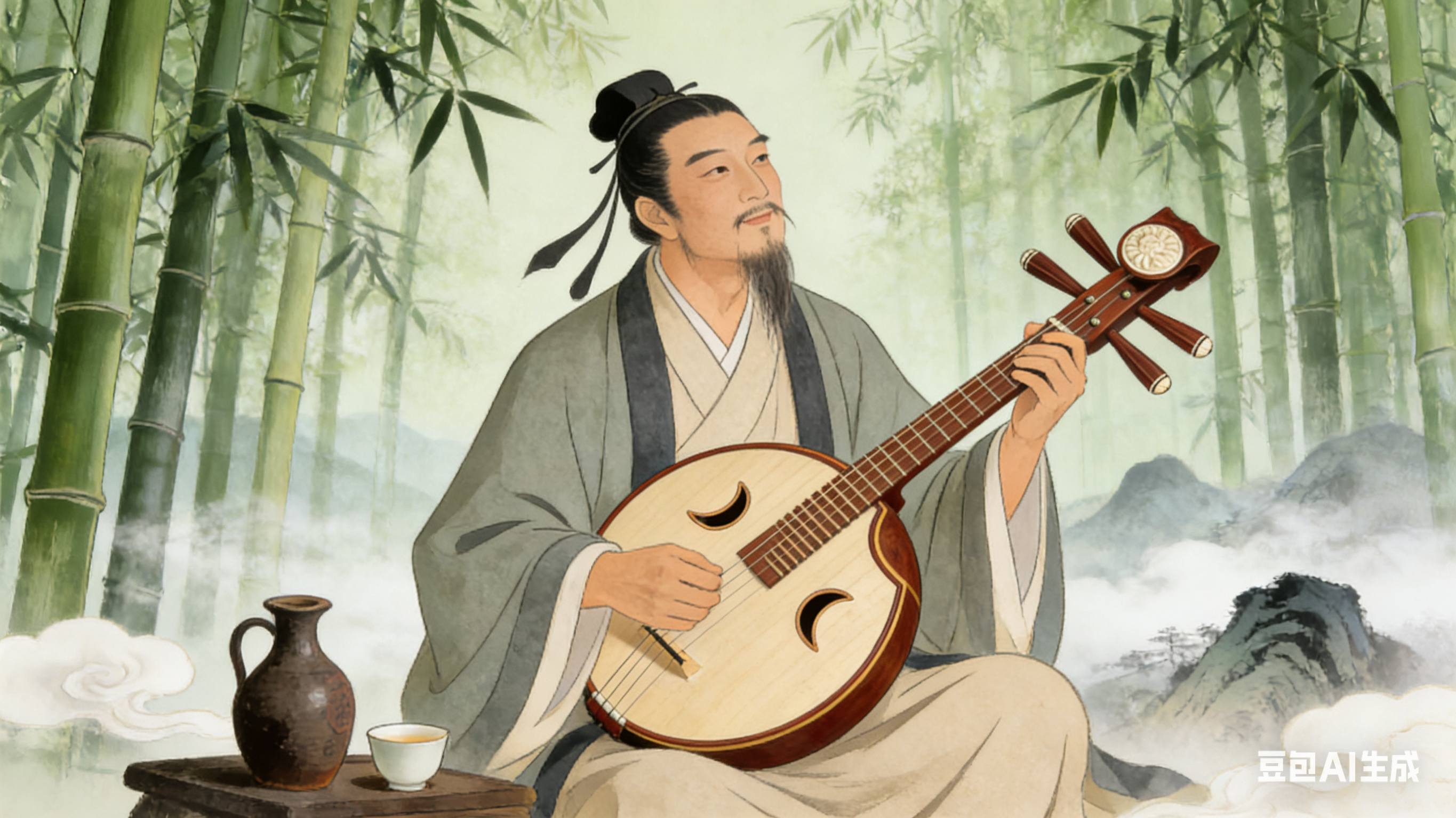 當時流行的“秦琵琶”形制粗糙,音域較窄,阮咸總覺得它沒能完全表達心中所想。于是他動手改良:調整琴身弧度,最終做成了四弦十二柱的長頸琵琶,音色清亮又不失渾厚,既能獨奏抒懷,也能合奏助興。