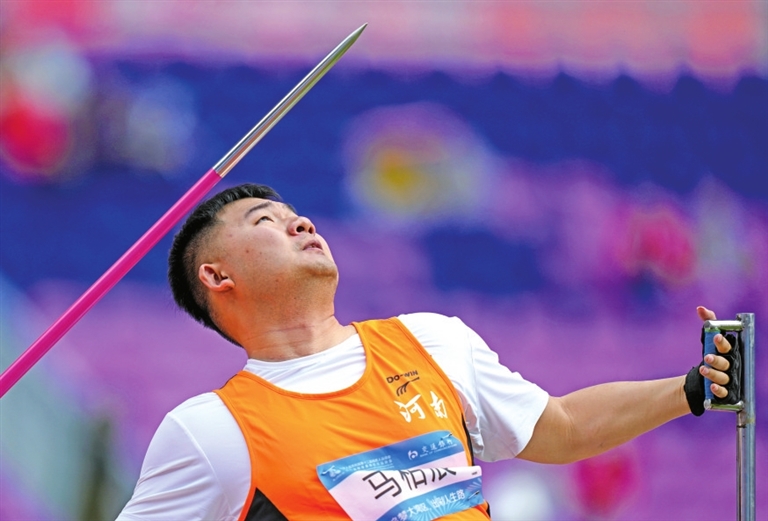 河南隊(duì)選手馬柏辰在男子標(biāo)槍F52級(jí)決賽中 新華社發(fā)
