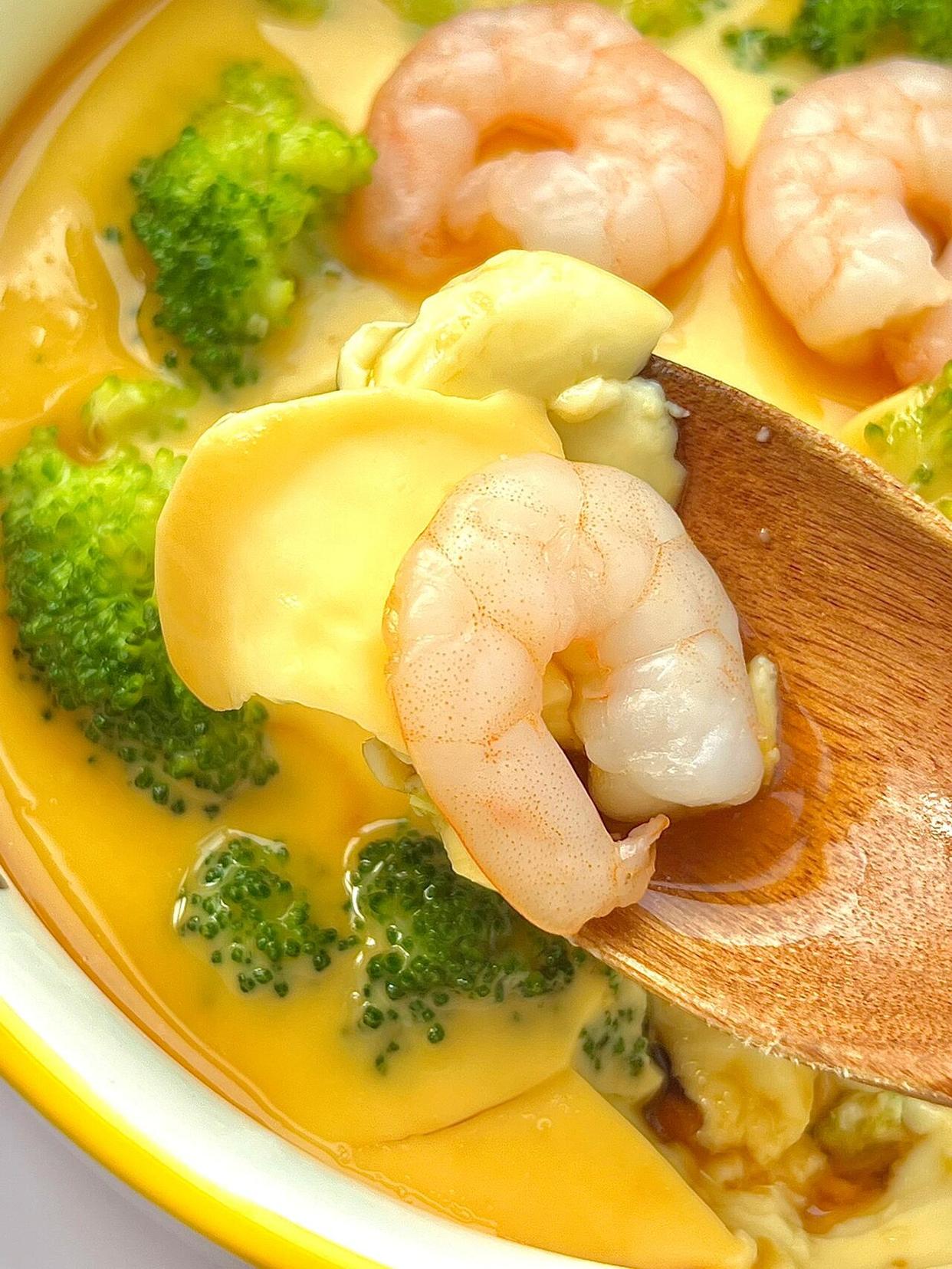 2. 蝦仁西蘭花蒸蛋——軟嫩入味,營養(yǎng)雙補(bǔ)