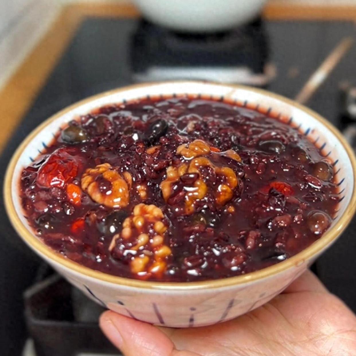 黑色食材提前浸泡是關鍵,既能縮短熬煮時間,又能讓口感更軟糯,更容易消化。核桃別放太早,避免煮得過于軟爛,失去香脆口感,保留部分顆粒感更健腦。