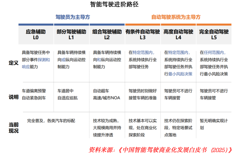 隨著技術持續迭代升級,疊加政策端法規標準完善與準入條件優化,智能駕駛商業化落地進程有望進一步提速,推動行業向更高階自動駕駛階段穩步邁進。