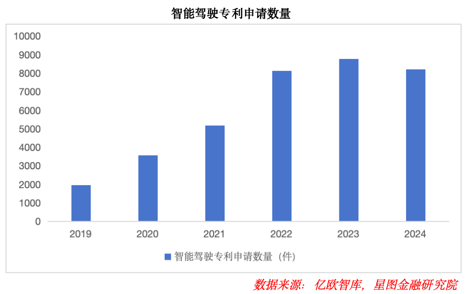 在政策支持下,企業持續加大研發投入。根據億歐智庫數據,2022年至2024年,我國智能駕駛相關專利申請數量連續3年超過8000件,呈現持續快速增長的趨勢。