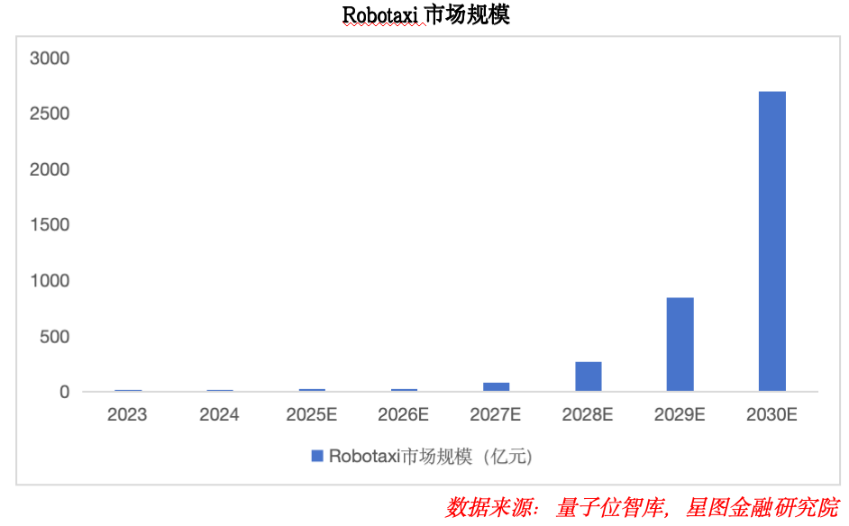 其次,在ToB端市場來看,商用場景有望逐步打開增長天花板。在Robotaxi領域,我國網約車與出租車市場基數龐大,Robotaxi可顯著降低行業運營成本,同時能夠實現24小時不間斷運行,可有效提升運營收入,具備巨大的市場應用潛力;后續隨著技術成熟與政策逐步放開,有望實現規模化普及。2024年,我國Robotaxi市場規模達3.13億元,到2030年或將增至2696億元。