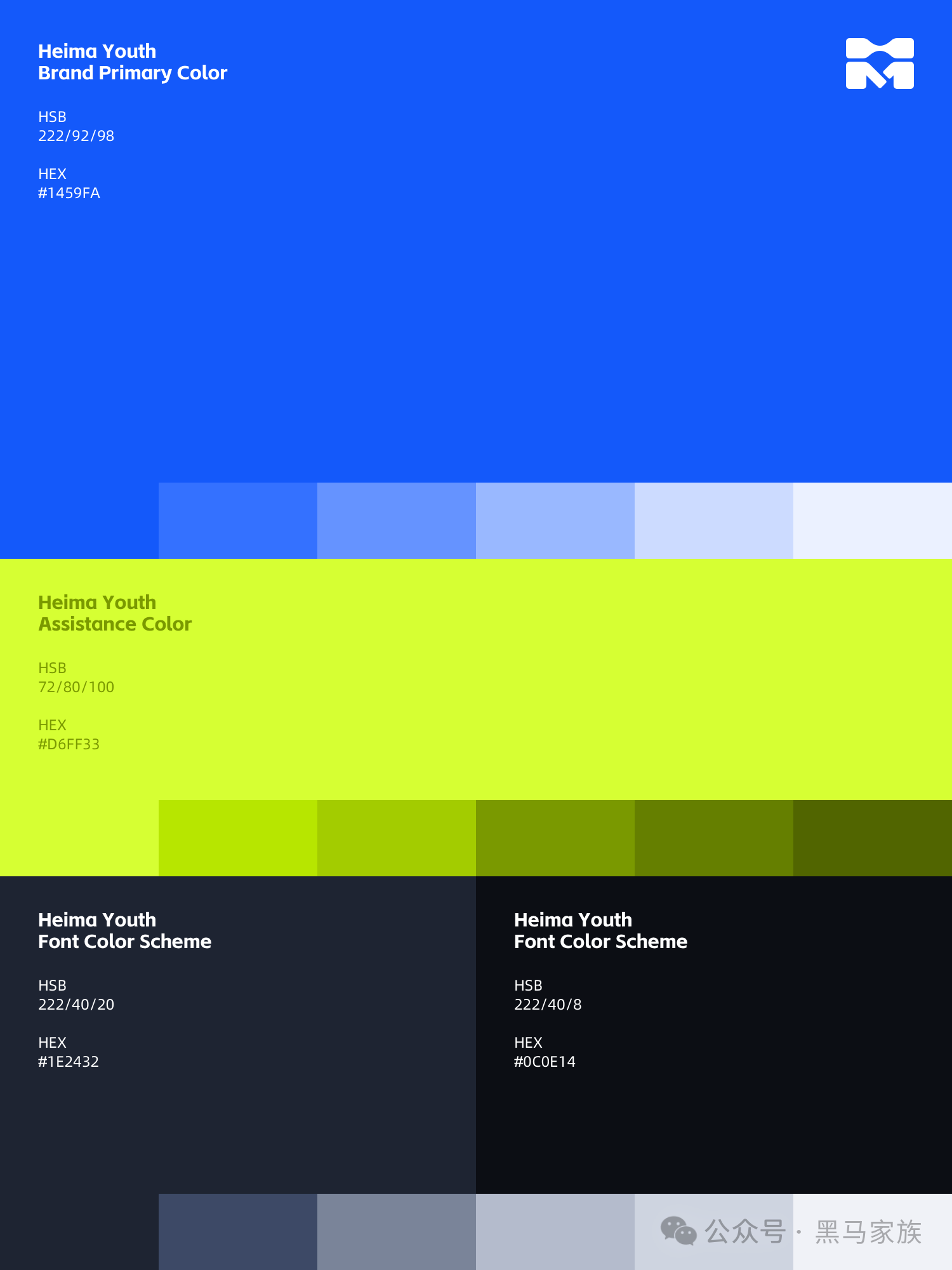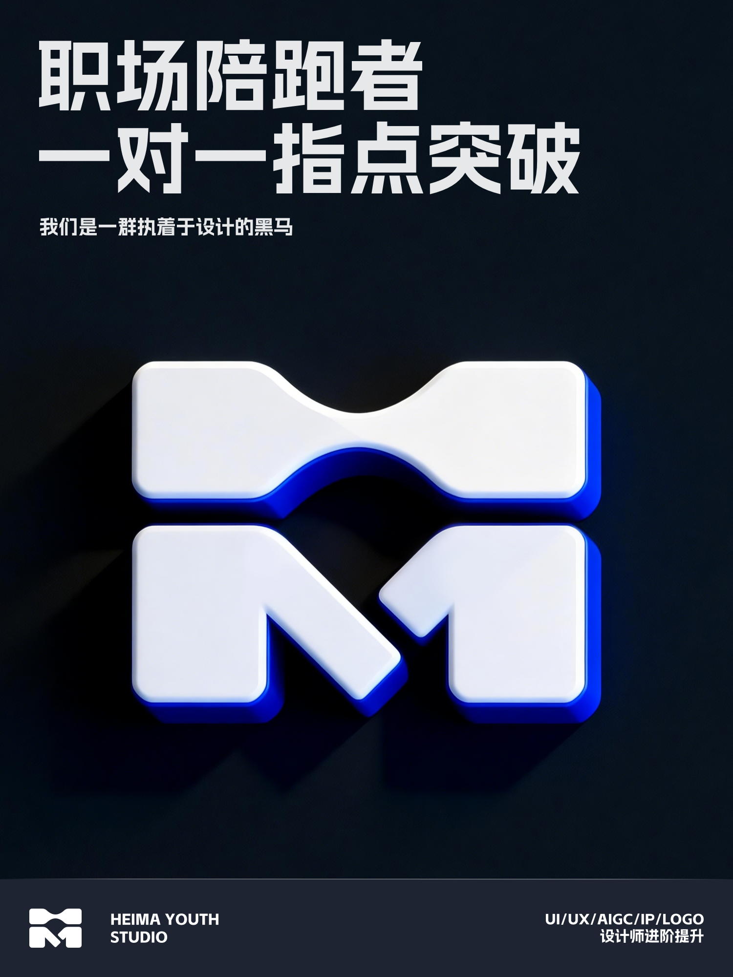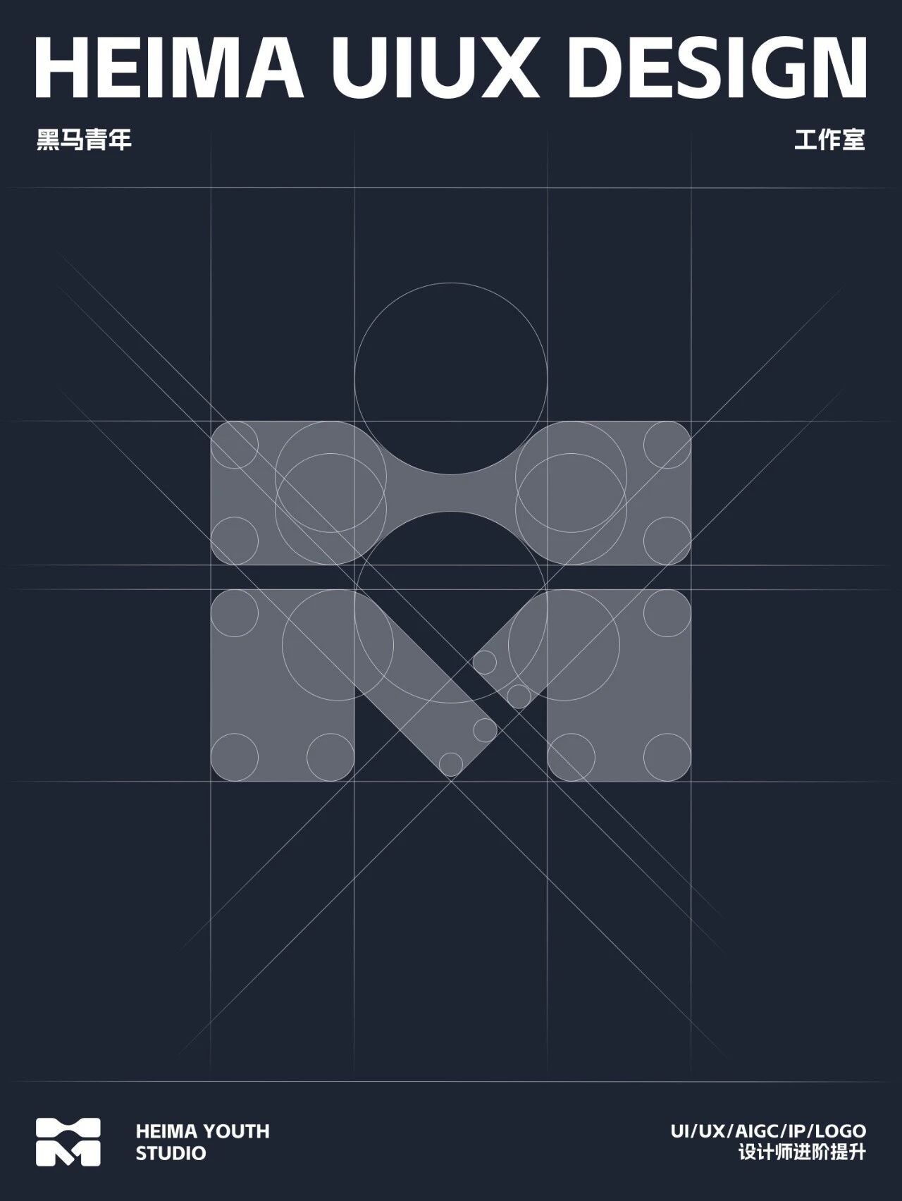 LOGO 設計說明:黑馬青年工作室 LOGO 圖形創意提取“黑馬”拼音首字母“H、M”進行藝術變形,再結合兩個人物造型進行創意組合,形成攜手共進的圖形寓意。圖形創意包含一對一職場陪跑之意,通過系統性的提升和一對一的指點,實現共同晉升的目的。