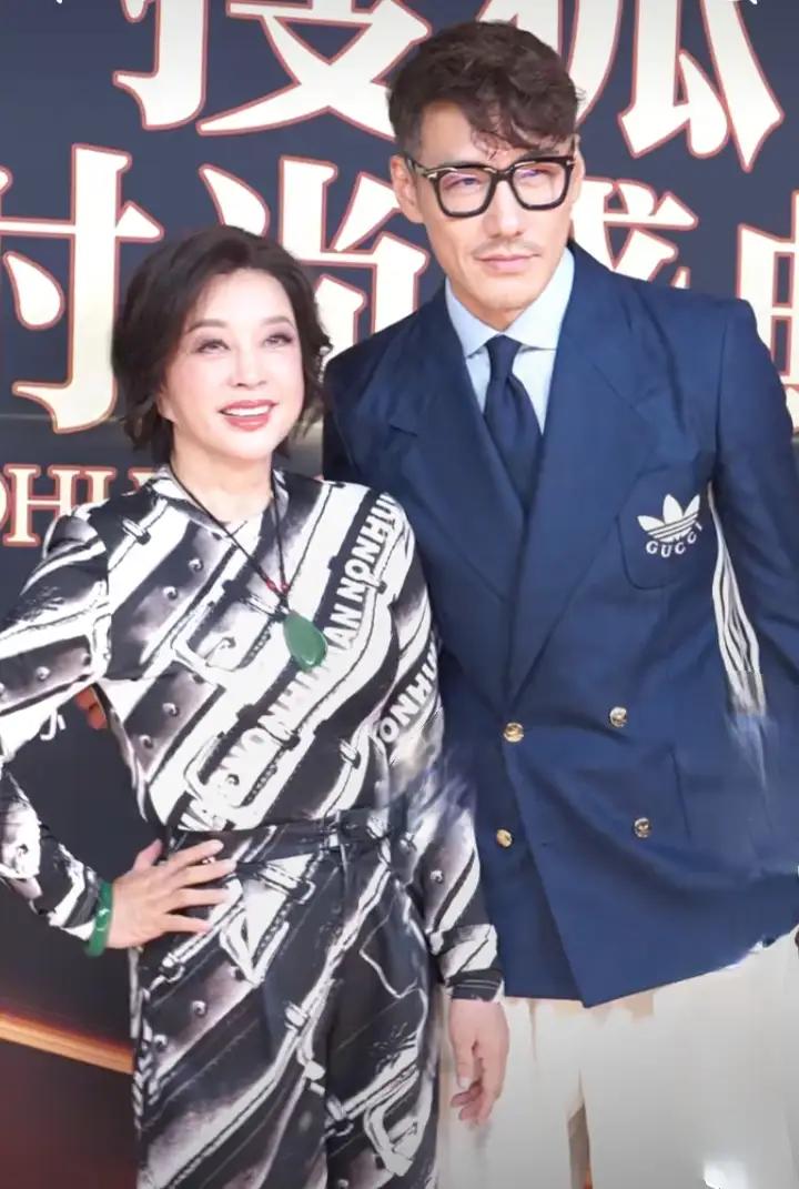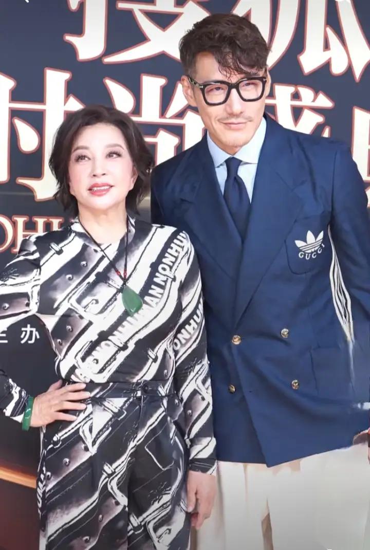 個性發型搭配黑框眼鏡,文藝氣息撲面而來,修長挺拔的身材完全看不出已是大叔級別,與劉曉慶站在一起,雖相差20歲卻宛如同齡人。