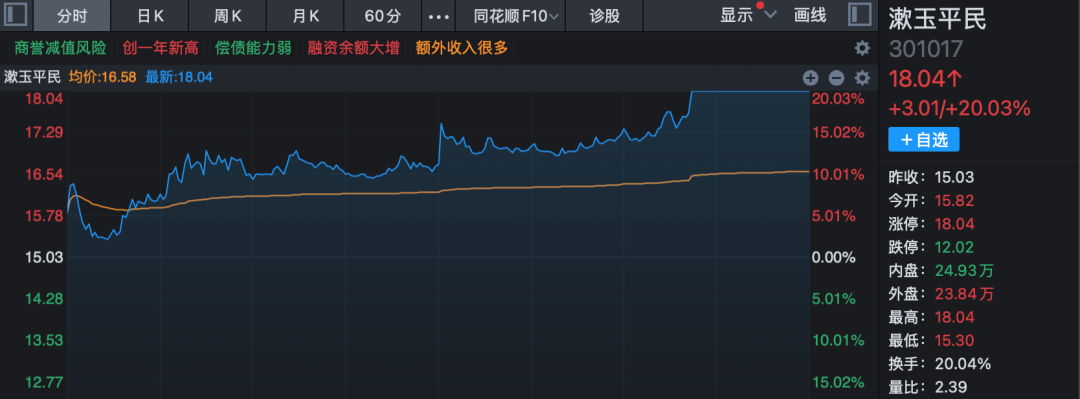 養老概念股今日大幅活躍,漱玉平民臨近尾盤20%漲停,嘉和美康亦在下午開盤沒多久后20cm封板,衛寧健康、一心堂、奧佳華、重藥控股等逾10股也強勢漲停或漲超10%。