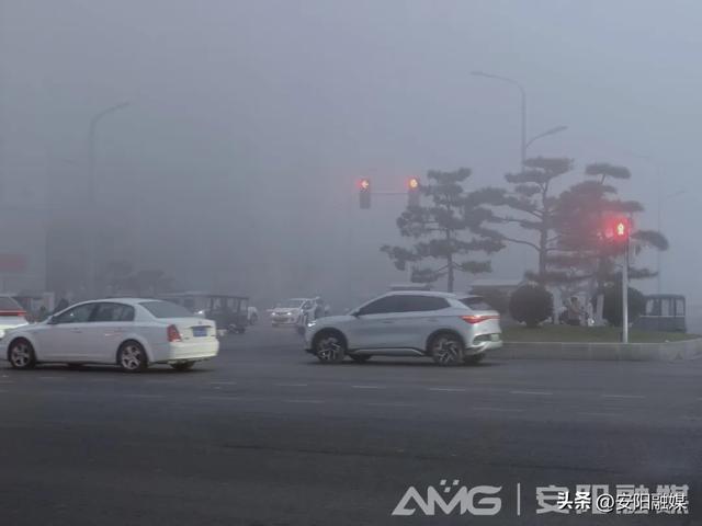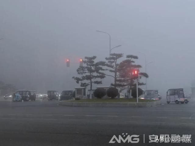 12月19日清晨,我市大霧彌漫,能見度低,車行緩慢。(安陽融媒記者 曲海慶 攝)