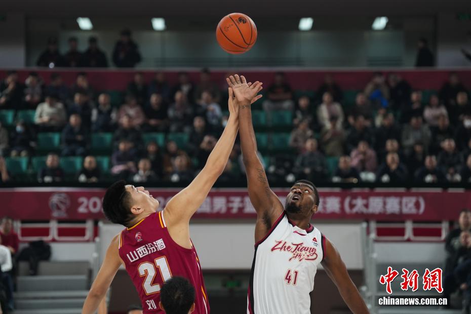 12月18日,雙方球員開賽爭球。當日,在太原進行的2025-2026賽季中國男子籃球職業聯賽(CBA)常規賽第3輪比賽中,山西汾酒隊主場以102比91戰勝浙江稠州金租隊。