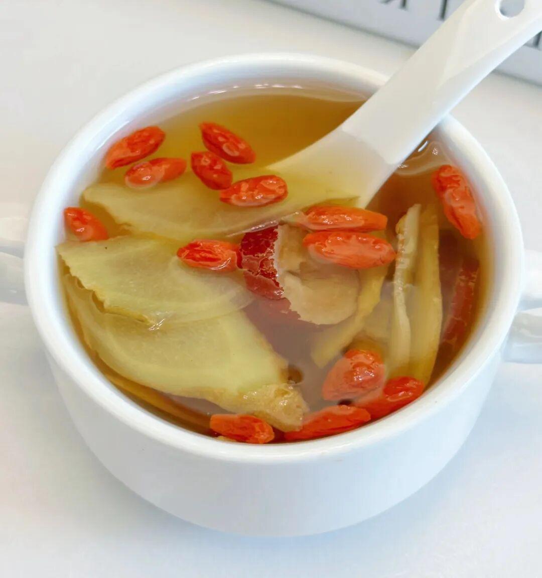 枸杞適量、黃芪2g、紅棗5顆、生姜5片。