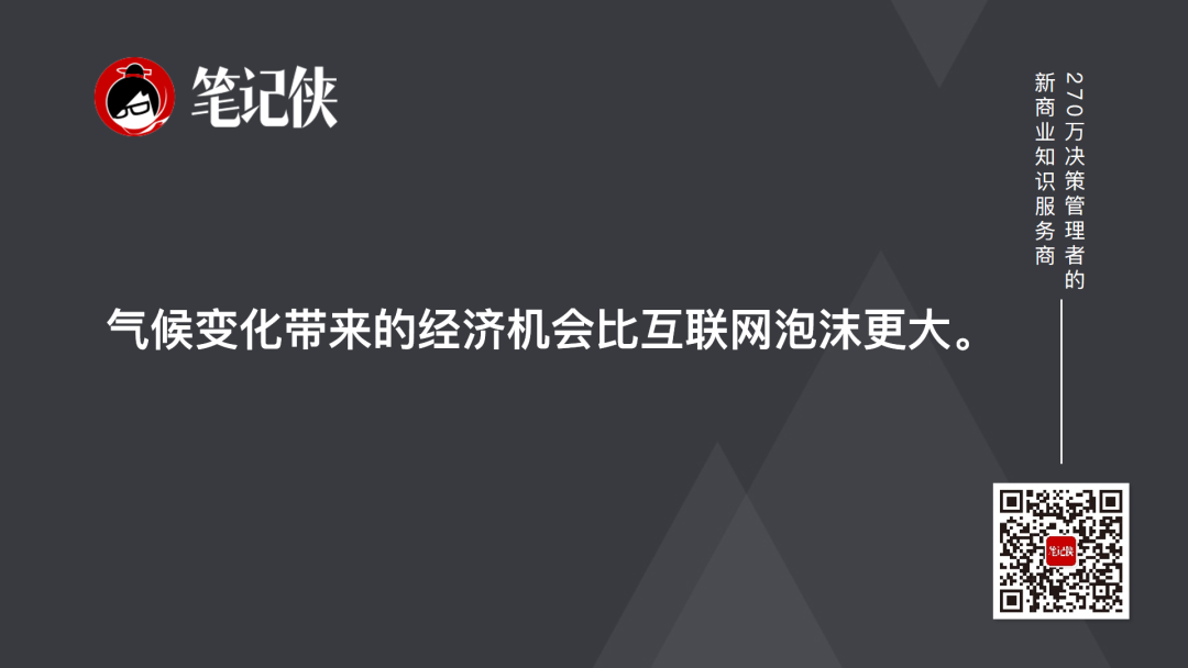 對此,極有遠見的風險投資家約翰·多爾(John?Doerr)說:“氣候變化帶來的經濟機會比互聯網泡沫更大?!蔽④浡摵蟿撌既吮葼枴どw茨也說:“在未來,碳捕捉技術將創造下一個微軟、谷歌和亞馬遜,以及8~10個特斯拉?!?