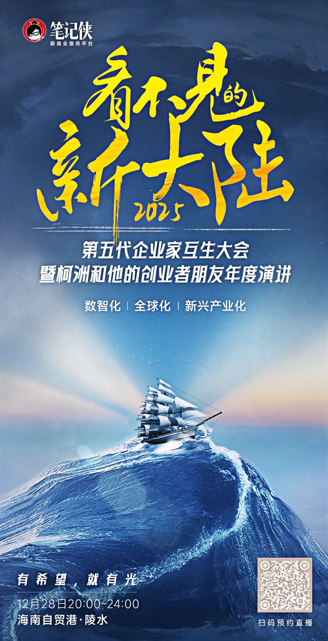 PS:各位筆記俠的朋友,跟大家同步一個消息——第五代企業家互生大會暨筆記俠創始人柯洲和他的創業者朋友年度演講,已經進入最后沖刺階段,距離正式登場只剩14天了!