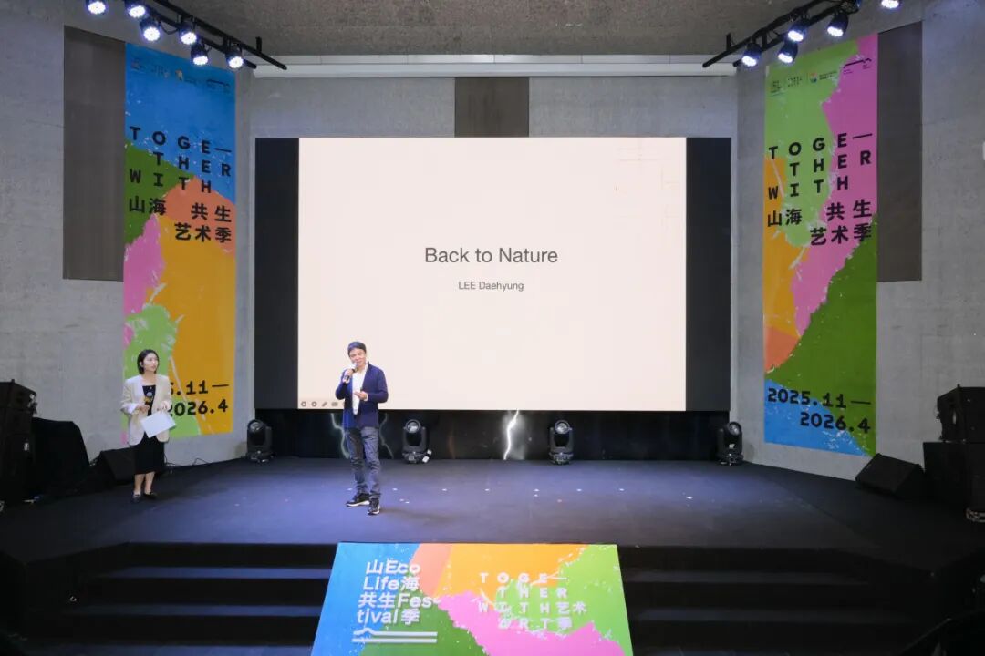 深圳市萬沙控股有限公司董事長、生物圈三號總負責人姜浩分享山海共生藝術季從愿景變成現實的精彩故事,著名設計師韓家英探討先鋒設計與美學,來自韓國的國際策展人李大衡結合國際策展經驗,分享藝術與自然的融合,中國當代藝術基金會理事長崔嶠闡釋國際藝術與社區融合案例以及幸福地理學。