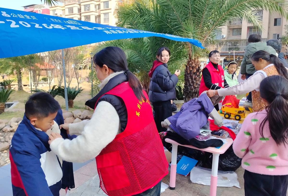 “大部分衣物都是新的,歡迎過來免費(fèi)領(lǐng)!”“我要這件棉衣。”“這件外套我家小孩剛剛好!”“我喜歡這個(gè)布娃娃。”“這個(gè)卡車還是很新……”老人小孩在攤位前各自挑選衣物和玩具、圖書。此前,志愿者成功鏈接愛心資源,讓閑置物品精準(zhǔn)發(fā)放給需要的人,其中圖書來自千里之外的江蘇宜興市,由宜興市陽光家園義工社及其愛心人士捐贈(zèng)。愛心衣物和玩具分別則來自楊連秀和劉桂嬌阿姨,共同實(shí)現(xiàn)“物盡其用”的目標(biāo)。