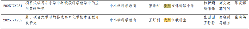 根據《河南省教育廳辦公室關于組織申報河南省教育科學規劃2025年度專項課題的通知》(教辦教科〔2025〕243號)要求,在逐級申報的基礎上,經過資格審查、專家評審、省教育科學規劃領導小組審核,確定2025年度專項課題335項,其中普通高中育人方式改革課題65項,特殊教育發展提升行動課題20項,省名師培育課題100項,中小學科學教育課題100項,校外教育培訓管理課題50項?,F予公布。