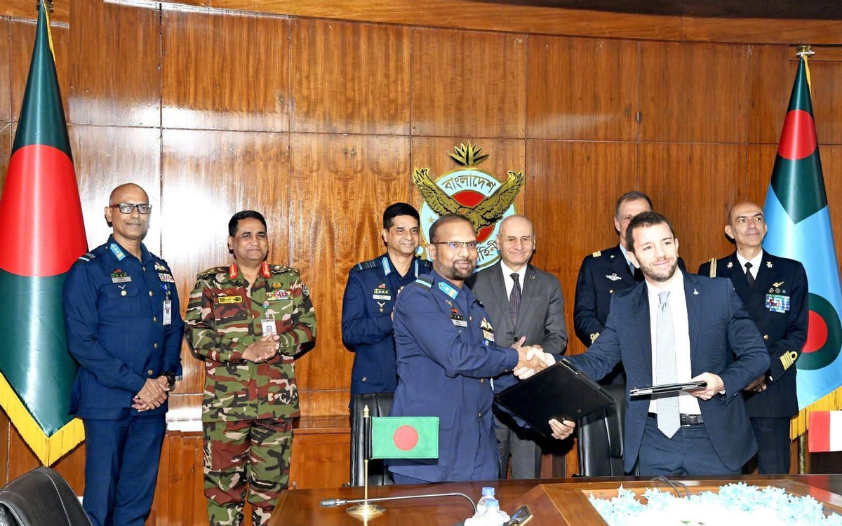 12月9日,孟加拉空軍上將哈?!ゑR哈茂德·汗與意大利駐孟加拉大使出席了關(guān)于供應臺風戰(zhàn)斗機的簽字儀式。這樣一來,孟加拉將成為亞洲首個裝備臺風戰(zhàn)斗機的國家,根據(jù)協(xié)議,意大利國防制造商萊昂納多公司將向孟加拉空軍提供12架臺風戰(zhàn)斗機,并幫助整合到孟加拉空軍的作戰(zhàn)體系中。